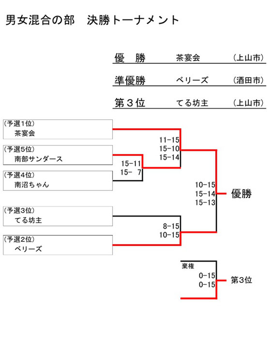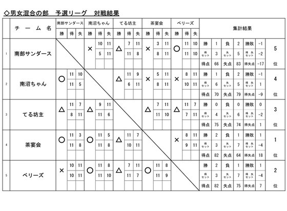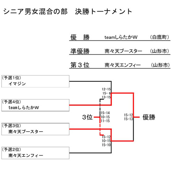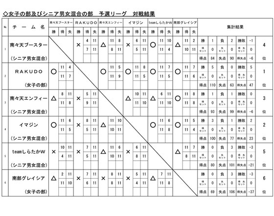 ※ 「シニア男女混合の部」の予選リーグは、「女子の部」の予選リーグと合同で実施