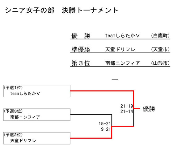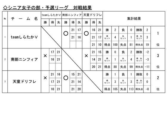 ※ 「女子の部」の予選リーグは、「シニア男女混合の部」の予選リーグと合同で実施